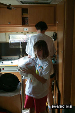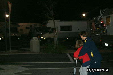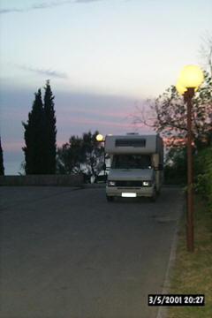 Povsem naključno smo našli velik in lepo urejen parking za avtodomove (čez dan v posebnem delu tudi avtobuse), kjer je bilo možno sprazniti WC-je, natočiti svežo vodo in seveda prenočiti. Še najbolj razveseljivo - zastonj (plačajo pa avtobusi).