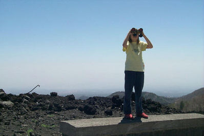 Etna je še en dokaz iznajdljivosti italjanskega turizma. Neka italijanka je pri katakombah vneto razlagala američanki, da je Italija "the biggest fucking machine for stupid tourists". In tako smo se na Etni tudi počutili. Do 2000 m se pripelješ z avtom (stalno piše "gondola"). Potem ceste zmanjka, na stavbi še vedno piše "gondola" - a o gondoli ni sledu. Turiste za 30 € vozijo z avtobusi okrog vogala, da od daleč (vrh Etne je na 3300 m) gledajo kako se rahlo kadi iz vrha. No mi smo 90 € prihranili in si dim iz Etne ogledali takole: