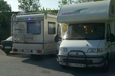 Malo dalje od Salerna smo že od daleč videli nekaj avtodomov. In ko pridemo bliže vidimo, da gre za Slovence - simpatične štajerce.