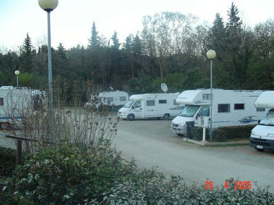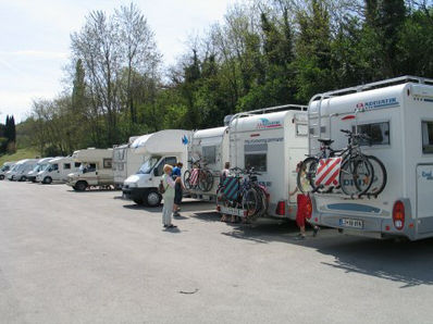 V Ferrari pa obljubljenih štelplacev od nikoder. Kar precej smo lutali in nazadnje povsem slučajno našli parking primeren za prenočevanje.
