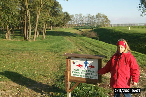 Morajo pa v Moravskih toplicah (če hočejo konkurirati Čateškim) imeti tudi golf in je zato življenje lahko nevarno. Če slabo vidiš kaj piše na tabli zapelji miško preko slike. In če že primerjamo: medtem ko te v Čatežu morijo z omejitvami (1 x 3 ure dnevno) greš v Moravcih lahko v bazen kolikorkrat želiš. Temu primerna je tudi gneča (mimogrede se ti pripeti, da moraš "gate" odnesti s seboj na bazen, ker so pač vse garderobne omarice zasedene. Seveda pa je glavna zamera Čatežu to, da kamp 15. okt. zaprejo. Sicer avtodomove spustijo v kamp tudi po tem datumu ampak pustijo te brez WC-ja, kopalnice in elektrike. Bravo Mokrovič!!!