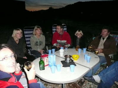 Pozno v noč smo reševali razne težave. Recimo probleme ljubljanskega prometa. Baje sem se tako vživel, da sta me moji ženski zjutraj prav postrani gledali. Na srečo smo imeli na razpolago nekakšen zaprti bife tako, da nas veter ni motil. Ponoči pa se je tako spet vlilo.