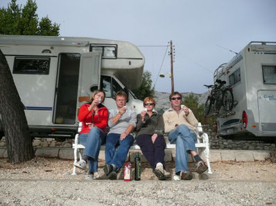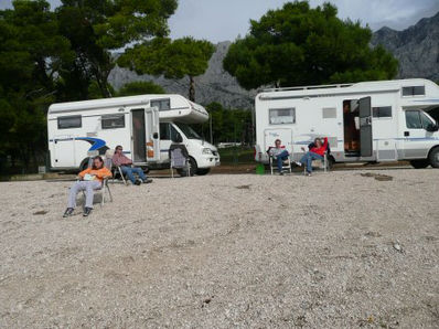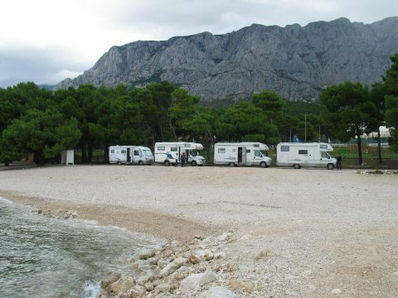 Glede na svežo vremensko napoved je bil plan: gremo domov. A zjutraj so s severa prihajale čudne vesti o zaprtih cestah zaradi orkanske burje, tu pa nirvana. Neumen kmet ima debel krompir. Marko in Blaž sta iz Dubrovnika sporočala, da lije kot iz škafa. Kaj nam ostane drugega kot čakanje. Škoda le, da je morju nameril komaj 16 stopinj. Ponoči je padalo kot pri norcih. Zjutraj pa je bilo spet lepo. Premaknili smo se le nekaj kilometrov do Makarske kjer smo parkirali na obali zaprtega kampa. Počakali smo še Markota in Blaža.