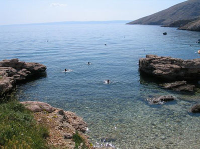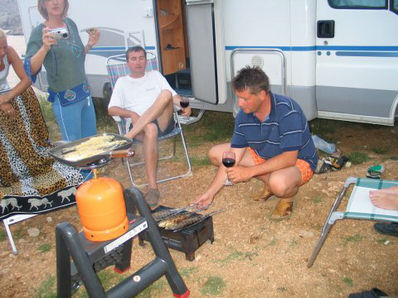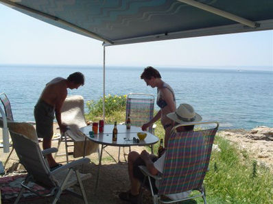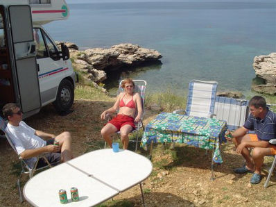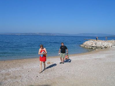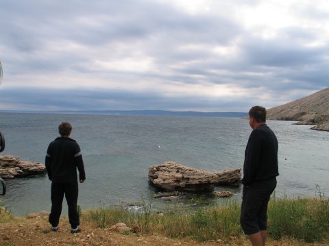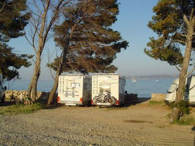 Ampak sem bil potrpežljiv - samo da se lahko speljem iz vroče Ljubljane. Precej pozno smo odrinili. Okrog polnoči smo si malo za Punatom ob zvezdah in ropotajoči muski mladcev privoščili pivo. Šele zjutraj sem videl, da je parking oz. plaža prav prijetna - no poleti najbrž ne.