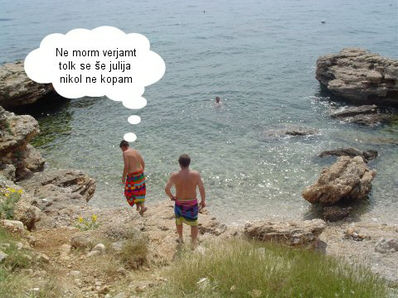Čeprav sva s Samotom po strokovnem ogledu ugotovila, da je v prvi vrsti prostora za samo en kamper ........ je Marko gor spravil vse tri. Voda pa še vedno ni bila čez 20.