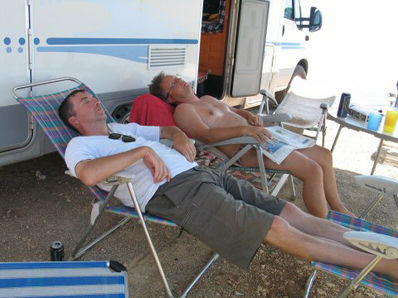 Teden je minil kot blisk. V petek zvečer smo prenočili na istem parkingu kot prejšnji vikend. Le da je bil tokrat en kamper več - Maja in Marko sta prišla naravnost iz Bosne. Vreme je bilo spet krasno, napoved za nedeljo pa ........ upajmo, da se ne uresniči. Takole sta se punci razgibavali, da sta se potem lažje vesti "basali".