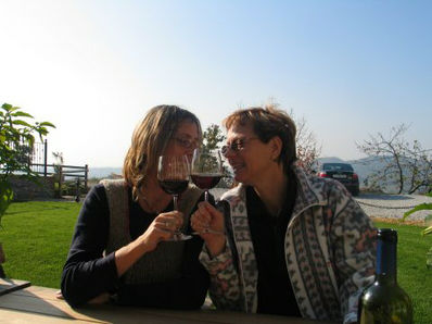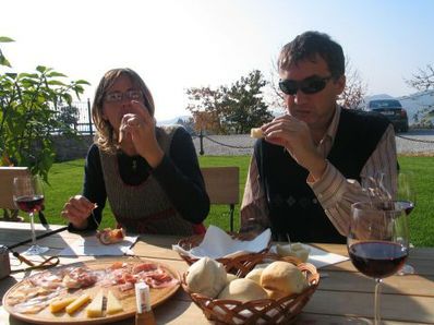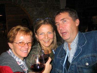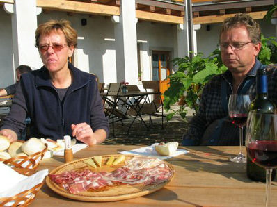 Po službi sva s Samotom pobrala svoji dami in se nekaj za cestninsko postajo ujela. Cilj - domačija Kren - niti nismo točno vedeli zakaj gremo. Pri Krenu sta nas čakala Maja in Marko (s še precej veliko klapo zraven) in to že od 12h. Ampak jim ni bilo dolgčas. Družba je hodila od enega vinogradnika do drugega. Pri vsakem so seveda testirali tekoče, pa tudi konkretne pridelke - lačnega in žejnega torej ni bilo.