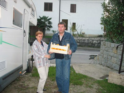 Takole so jih natlačili enega zraven drugega. Še en skok do Sandija, ki nas je velikodušno založil s kakiji........ in gremo domov.