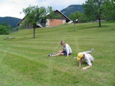 Me gremo! Kaj pa vi deci? A kar sedeli boste? - seveda ne. malo bomo tudi stali.............ker takšno valjanje po travi smo že prerasli ... ma niti nisem siguren mogoče bi se pa mi tudi malo povaljali - bomo drugič bolj premislili.