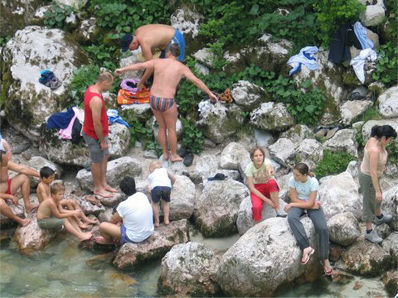 Obala Soče je bila polna vročih forumašev. Kdo bi si mislil, da se v Soči folk tudi kopa?
