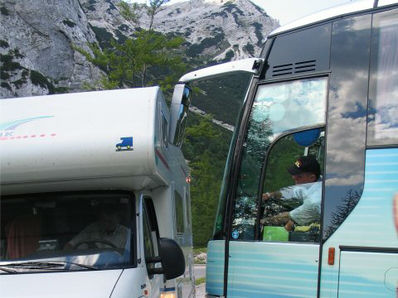 Ker Gliša nima vize za Italijo smo se vračali preko Vršiča. Sem mislil, da bo huje kot je potem izpadlo. Malo vrtenja je že ampak sile pa ni. Razen če ne srečaš avtobusarja, ki rine vate čeprav si parkiran meter od roba ceste.