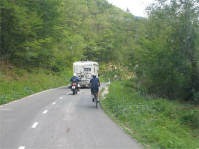 V takšni vročini paše na morje. Ampak v kampu Lazar je vedno lepo - sploh če se zbere čez 40 avtodomov in če časti sedem abrahamov. V petek 17. smo odrinili iz Ljubljane ob nenormalno zgodnji uri za MKGP. Ob nekaj čez dve smo se dobili z Markotom in ob treh smo bili na črpalki pri Jesenicah - čakali so že Samo, Sašo in Riki. Večina je bila odločena da preko predela odkolesari. In so res.................................. Nekaj klančkov je blo kar solidnih.