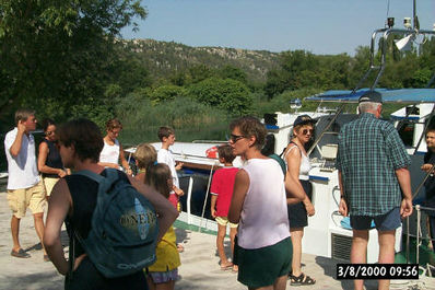 Na Slapove Krke smo prišli precej zgodaj. A "brodovi" so bili že zasedeni. Po kratkem pogajanju smo se zato odločili za "čamac (pa šta mu fali?) - Ništa", torej gremo.