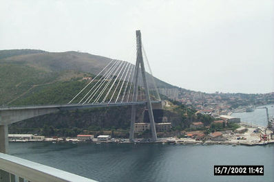 V Dubrovniku smo bili okrog poldne. Slavni most Dr. Franja Tuđmana - tako vsaj piše ! Nekaj minut kasneje smo že "falili" cesto in zato prišli do lepega razgleda na Dubrovnik (še vedno pa je najlepši pogled z morske strani).