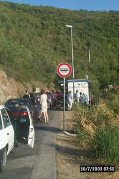 V sredo, 30.7. smo nekaj pred osmo uro zjutraj že stali v Brestovi v koloni za trajekt.