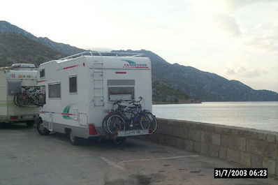 Zjutraj smo na drugem koncu vasice opazili dva avtodoma, ki sta bila povsem ob morju in povsem na samem. V mislih sem že pisal nekomu, ki je na forumu spraševal, kje na Jadranu lahko človek parkira z avtodomom tik ob morju in da v bližini ni nikogar.