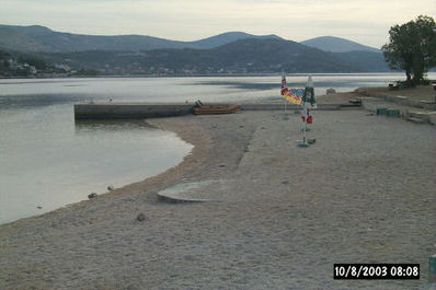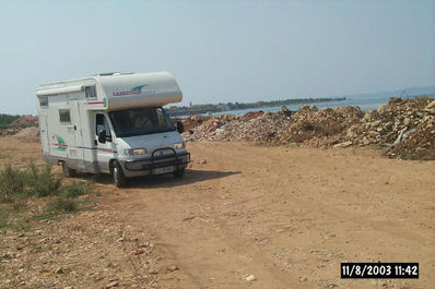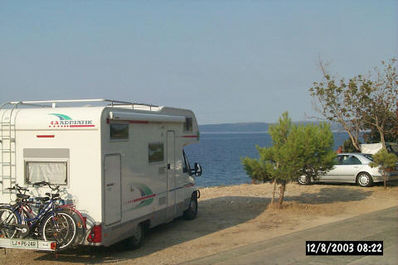 Zato smo pot končali nekje za Senjem. Pihala je burja, Mojco je skrbelo ali nam ročna zavora drži ali nas bo odneslo v morje. No, končalo se je srečno. Že zgodaj zjutraj smo odrinili in v Novem Vinodolskem spet poiskali "direkt am Meer", da smo pozajtrkovali, se naplavali.