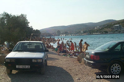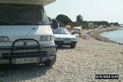 Neke čudne slutnje so me začele spreletavati, da bomo tudi letos končali v Dalmaciji. Po kozji stezi smo se bližali kampu Baldarin (vmes smo zaradi mulcev, ki so narobe obrnili tablo obiskali še Lošinj in se potem hladili v morju). Na srečo so na tej stezi naredili nekaj izogibališč, ker ko srečaš šleper se ti zdi, da sanjaš.