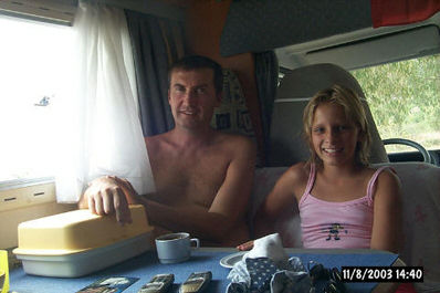 S precejšnjo zamudo glede na prejšnja leta sva se v ponedeljek zvečer, 28.7.2003 odpravila po najino malko, ki je v Valkaneli trenirala živce babici in dedku.
