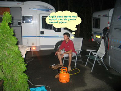 Tam je Gliša demonstriral srbsko barantanje. Slovenci smo po desetih minutah "glihanja" uspešno prišli iz 100 EUR za vse kamperje na 100 EUR - Gliša v minuti na 80.