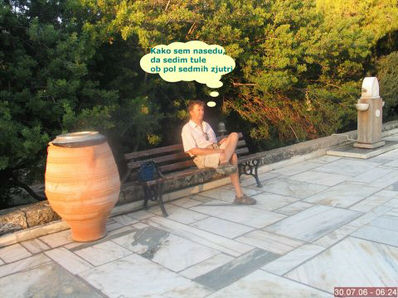 V nedeljo smo vstali sredi noči. Da nam kdo pred nosom ne odnese akropole. V kampu žal dobiš napačne informacije o odpiralnem času. Če odštejem policaje smo bili pred akropolo sami. Takole sem obsedel tudi ko so šli ostali gledati skale. Sem vse to že videl in se v zadnjih 20tih letih sigurno niso spremenile.