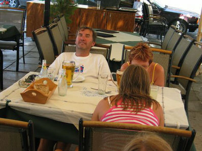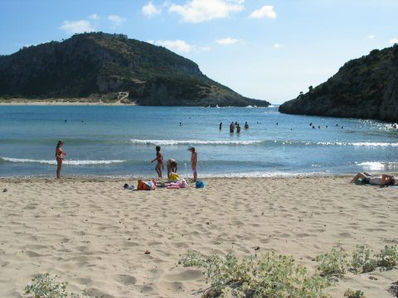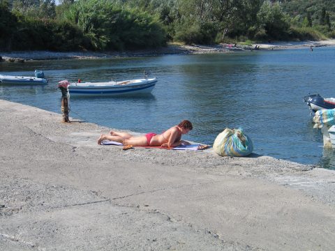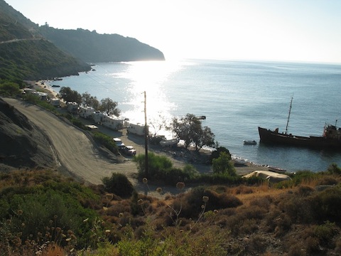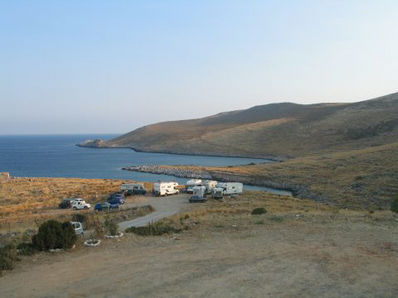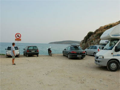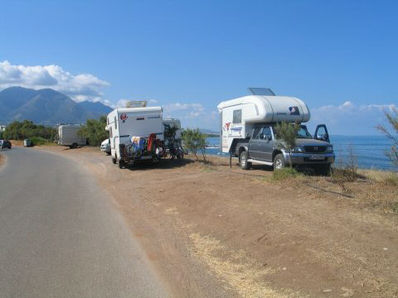 Kultura človeka utrudi. Treba se bo podpreti. Nekaj km za Delfi smo zato parkirali in pokosili, povečerjali ...... Prespali smo na plaži vasi Porto Germeno. Prav zanimivo. Nobenih težav s spanjem v državi kjer je prenočevanje na divje prepovedano. Grkov sploh ne moti. Policija se vozi mimo kot da nas ne vidi. Skratka povsem drugače kot pri naših sosedih. Morje pa je bilo tu vsaj 5 stopinj hladnejše in se z lahkoto ohladiš.