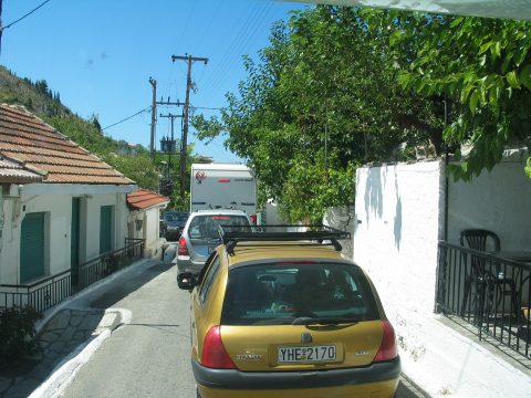 Na srečo brez prask. Kljub obupnim grškim voznikom, ki se tudi pol metra "rikverc" prav težko prepeljejo in imajo občutek, da je kakšen clio širok vsaj 2 metra.