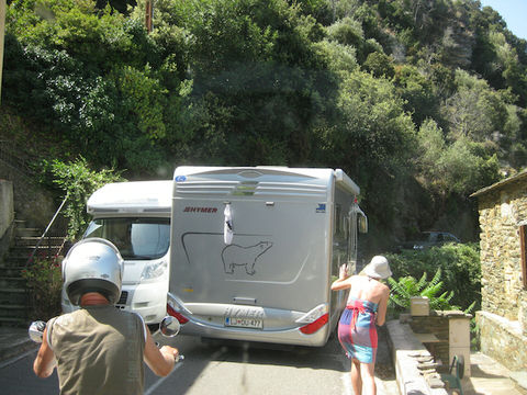 Že po nekaj kilometrih je Mojca ugotovila, da nimamo kruha. Bojan je zavili z vukojebine v še večjo, kamor je pač kazal znak za trgovino. In sredi ničesar so imeli nekakšno ulično rajanje in policaj nas je usmeril v še večjjo vukojebino. Tako smo takoj na začetku opravili izpit iz vožnje po Korziških cestah. Mimogrede Korziške ceste sploh niso tako grozne kot krožijo govorice.