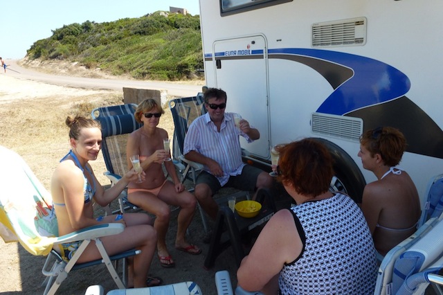 Mi smo parkirali na boljšem prostoru čeprav še vedno v "žbunju" 500 m od plaže med večinoma makaronarji z obešenimi gatami vsevprek. Skratka obup.