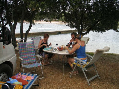 V nedeljo zvečer sta morala Bojan in Barbara žal domov. Podlipčki in Zvržinčki smo se premaknili pred oz. zjutraj v Koversado. Kljub polnemu kampu nam je spet uspelo - prva vrsta je naša. In spet smo meditirali in čvekali, da bi skoraj dež priklicali. Ko sta se Romana in Samo v torek proti večeru poslovila je bilo že precej oblačno in vetrovno.
