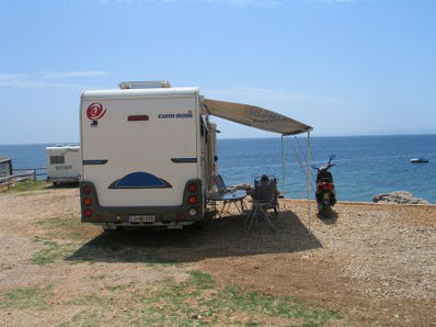 Na srečo vsako leto pride konec šole. Letos celo konec osnovne šole. In kot običajno gremo ta čas na teden dni lenuharjenja. Nič kaj nismo komplicirali z izbiro kraja. Lani je bilo na Krku v redu. Zakaj torej menjati - ležanje je enako na Krku ali na Maldivih. V petek, 23. junija (ob neverjetnih 7.30) smo bili na poti in slabe tri ure kasneje na cilju. Seveda v prvi vrsti. Najboljše mesto je bilo sicer že zasedeno - na srečo, s kom drugim kot Janijem, enim od mnogih ljubiteljev prve vrste z Brega. Torej je bila prva vrsta povsem domača. Prvovrstna pa je bila prvi dan in pol tudi burja. Brez ustrezne sosedove obtežitve bi bila tenda lepo pospravljena.