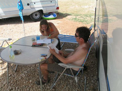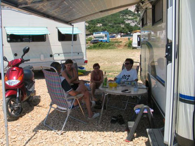 Potem se je umirilo. In že ob jutranji dezinfekciji zob tenda ni potrebovala nobene obtežitve. Zrak se ni več premaknil - kaj bi človek dal za vsaj malo vetra. Prihod v kamp smo dobro načrtovali - čeprav po sreči. Že naslednji dan smo doživeli pravo invazijo makaronarjev.