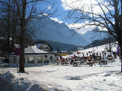 Ker je za našo Petruško v Gorjah zmanjkalo prostora oz. če prevedem, jo je mami prepozno prijavila, smo za vikend skočili proti Flachau. Za kaj več ni bilo časa. Kmetijsko ministrstvo ima preveč dela, da bi njegovi podložniki lahko kaj dlje uživali (če odštejem posvečene BUTlje). V petek popoldan smo se za nekaj ur ustavili najprej v Kranjski gori, kjer nas že nekaj časa ni bilo. In nismo nič zamudili. Zgornja in spodnja slika bi lahko nastala kadarkoli. Parkirišče je denimo še vedno "sama jama" - no nekaj je še blata - odvisno od vremena.