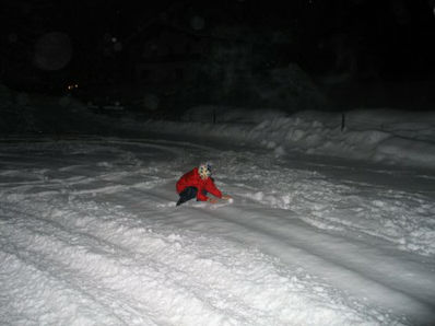 In naš ljubi otrok je imel še isti večer snežno zabavo. Tole ležanje so do jutra že preprečili. Ob štirih zjutraj je pripeljal plug in kakšno uro pridno plužil. Seveda sva z Mojco to "veselo" opazovala. Saj se ne spodobi, da ob štirih zjutraj spiš medtem ko drugi delajo.