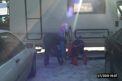 Dva dni smo smučali a zaradi Novoletni praznikov in strahu pred kakšnimi objestnimi "praznovalci" smo se raje odpeljali zvečer domov in se drugi dan vrnili.