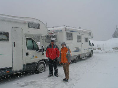 Plani so bili visokoleteči. Dolomiti, Avstrija ....... Vremenska napoved pa je bila zelo "slaboleteča". Dež, sneg, veter na zahodu. Na vzhodu Slovenije pa zna celo sijati sonce. Dileme torej ni bilo. Važno, da se mladiči nasmučajo, starci pa..... bo kar bo. Na dan odhoda je bilo še vse nedorečeno. Marko gre na pot v soboto, mi gledamo v nebo in nam ni nič jasno, Podlipčkova ne vesta ali kam gresta ali celo gredo ........ Nazadnje sta Podlipčkova štartala okrog destih zvečer z Brega, nekaj kasneje mi. Na AC smo se počakali in nekaj po polnoči parkirali na parkirišču Habakuka v Mariboru.