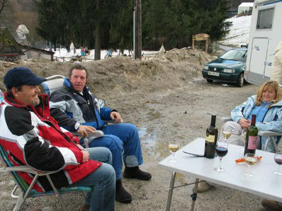 Parking imajo ves v blatu. Vreme pa kot so ga obljubili oziroma še boljše. Soncu je nagajal edino veter, ki je občasno privlekel oblake. Takrat je v hipu postalo "ne več tako toplo".